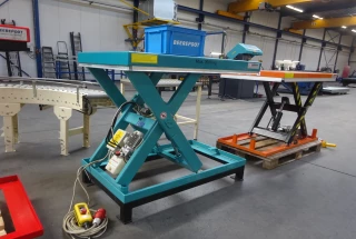 Wij hebben gebruikte heftafels met draaiplateau in voorraad. Deze kunnen we in onze werkplaats geheel aanpassen volgens de wensen van onze klanten. Op de heftafels met draaiplateau kunnen producten gemakkelijk geroteerd worden. Het draaiplateau wordt meestal handmatig bediend.