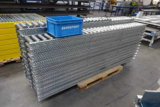 In onze 30.000 m² aan opslaghallen hebben wij kilometers gebruikte en nieuwe zwaartekrachtrollenbanen (ook wel niet aangedreven rollenbanen genoemd) in voorraad. In diverse breedtes, roldiameters, rolafstanden en uitvoeringen (staal en PVC). De kans dat jij de zwaartekrachtrollenbaan die je zoekt bij Beerepoot vindt is heel groot!